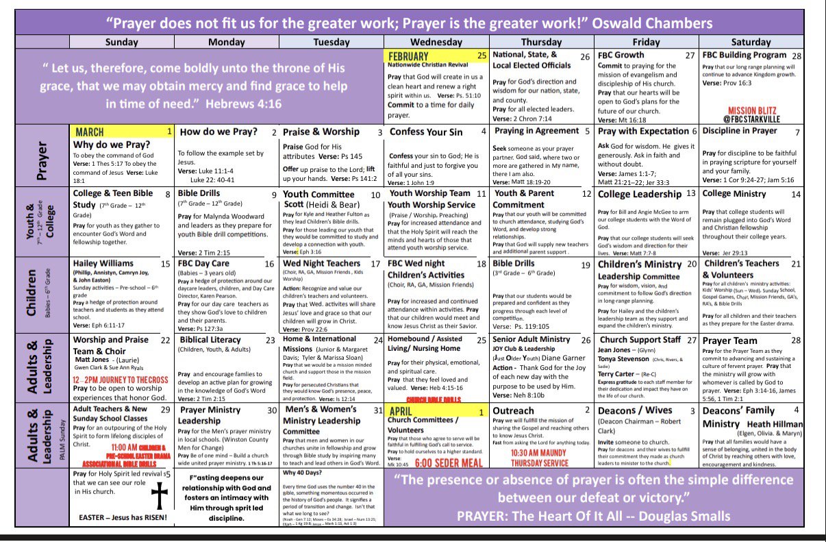 40 Day Prayer Calendar
